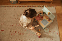 Designen hålls i ljusa färger med vita och träfärgade nyanser, vilket ger ett nordiskt och lugnt uttryck som passar in i de flesta hem. Produkten är lämplig för både pojkar och flickor från cirka ett år och uppåt.